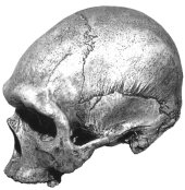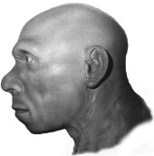 Neandertal-ihmisen kallon perusteella valmistettu pää, jonka piirteet ovat nykyisinkin tavanomaiset. Amerikan intiaanien ja Amazon-joen varrella asuvien alkuperäisheimojen kallojen ominaispiirteitä on pidetty alkeellisen rodun merkkinä. DNA-tutkimukset ovat kuitenkin todistaneet, että kaikki nyt elävät ihmiset ovat hyvin läheistä sukua keskenään ja kaikilla on samat esivanhemmat, jotka elivät vain joitakin tuhansia vuosia sitten. | |
