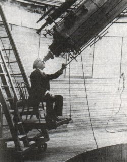 yhä. Kuvassa Lowell teleskooppinsa äärellä.