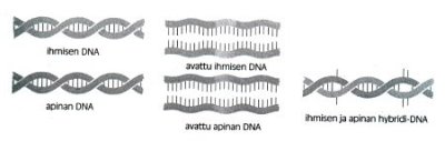 Vaikka ihmisen DNA saatiin alustavasti "auki" vasta kesällä 2000, todistetaan opiskelijoille pienten valikoitujen DNA-palojen vertailuun perustuen Biologian oppikirjassa ELÄMÄ: "DNA-hybridisaatio osoittaa vertailtavien lajien sukulaisuuden. Tällaisten tutkimuksten perusteella eräät tutkijat ovat puolivakavissaan ehdottaneet, että eläinten luokittelu pitäsi uusia. Ihminen on oikeastaan yksi simpanssilaji."