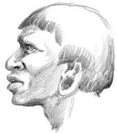 V. 1860 Australian mantereen tutkimusryhmän taiteilija Ludwig Becker piirsi oheisen kuvan sikäläisestä alkuasukkaasta, jota pidettiin enemmän eläimenä kuin ihmisenä. Alkuasukkaita metsästettiin kuin mitä tahansa riistaa. Osa vainajista täytettiin ja lähetettiin eri museoiden rotutukijoiden käyttöön todisteeksi kehitysopin puolesta 4. | |